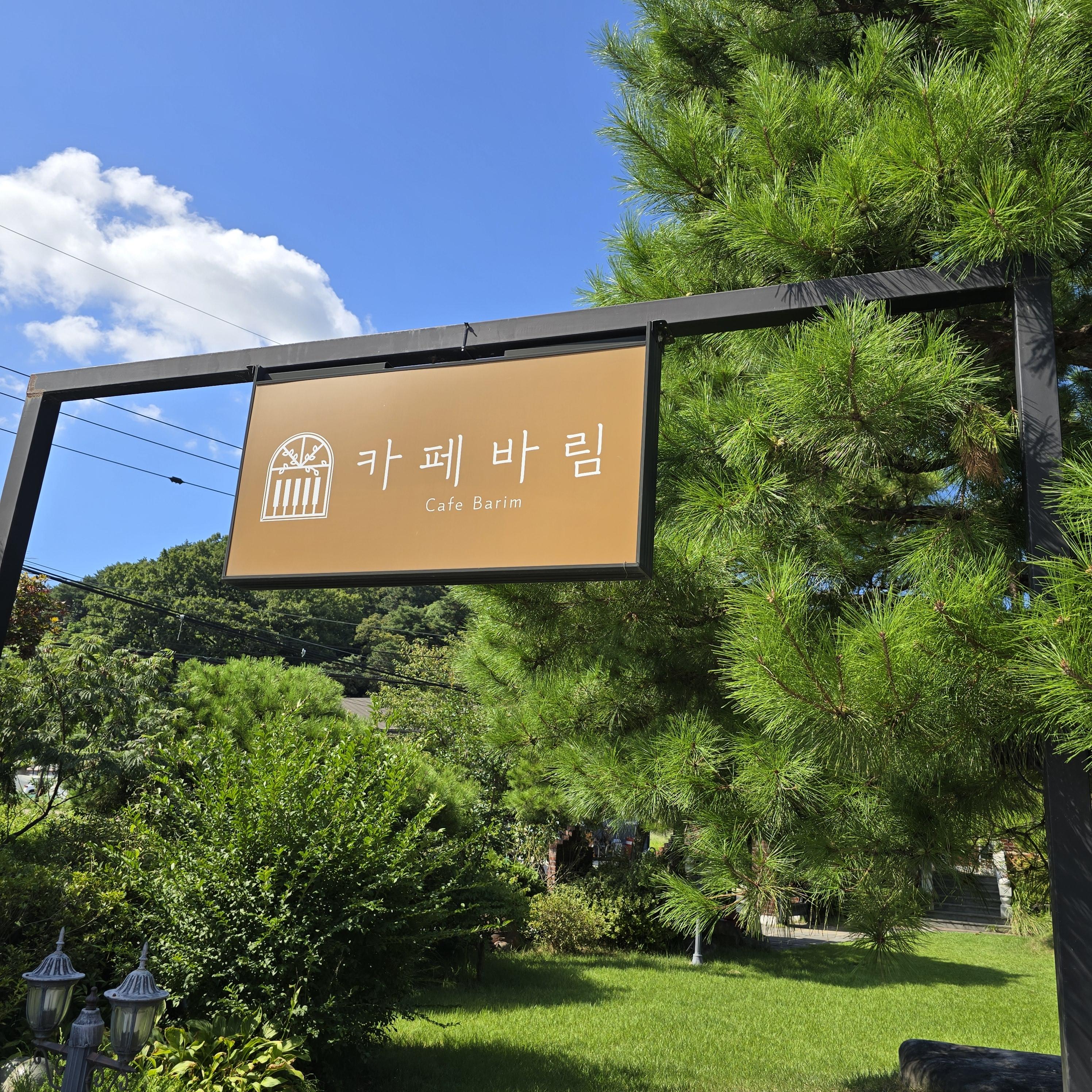 "소나무향기"라는 식당과 함께 주차장을 사용하고 있는 카페 바림이예요 주차를 하고 카페를 들어서는 길목에 카페바림 간판이 세워져 있어요