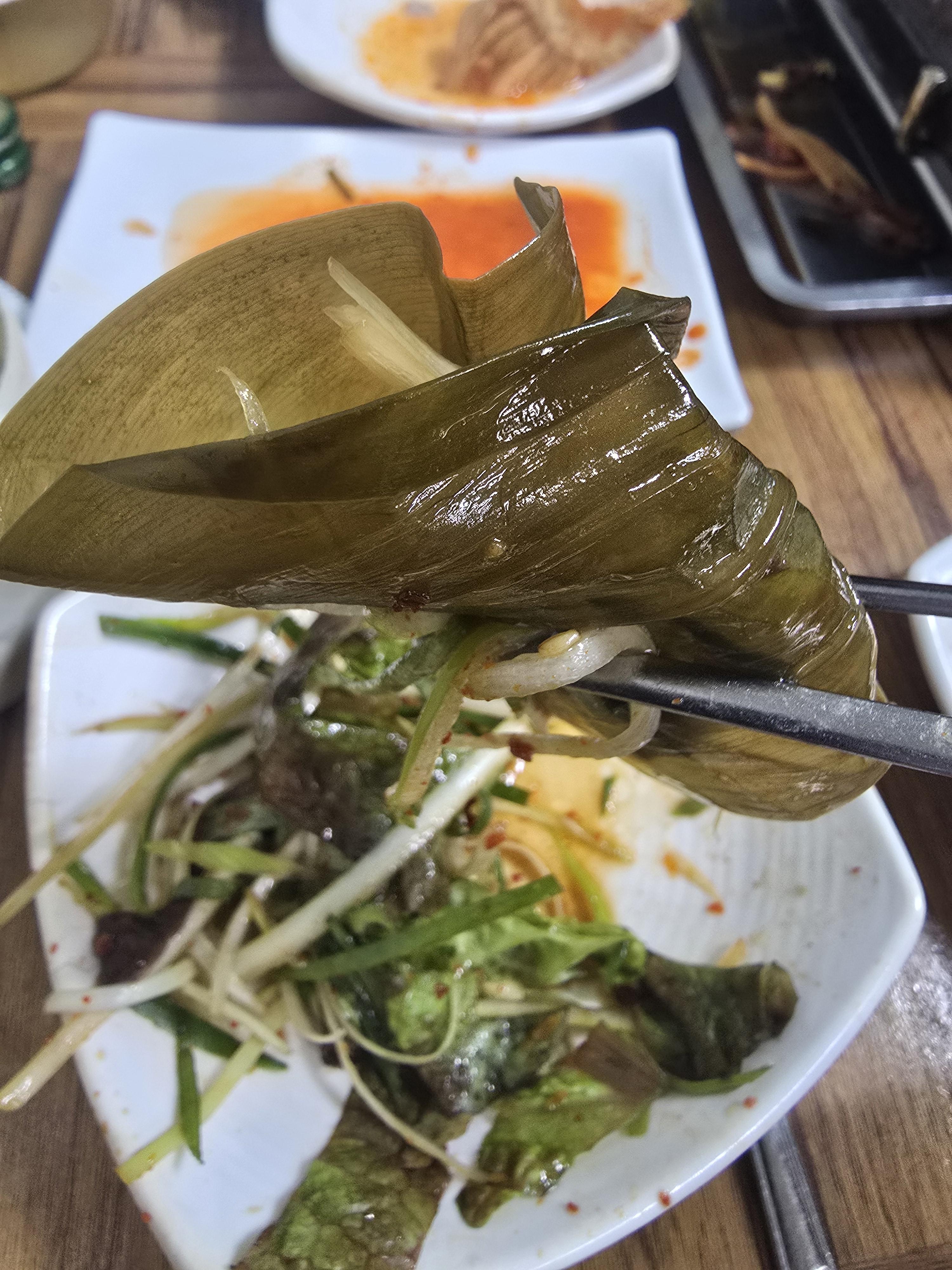 마무리로 명이나물에도 싸서 먹어주니 아주 야무지게 삼겹살을 먹어준 거 아시겠죠? 하하하 도대체 몇 점을 먹은 건지...