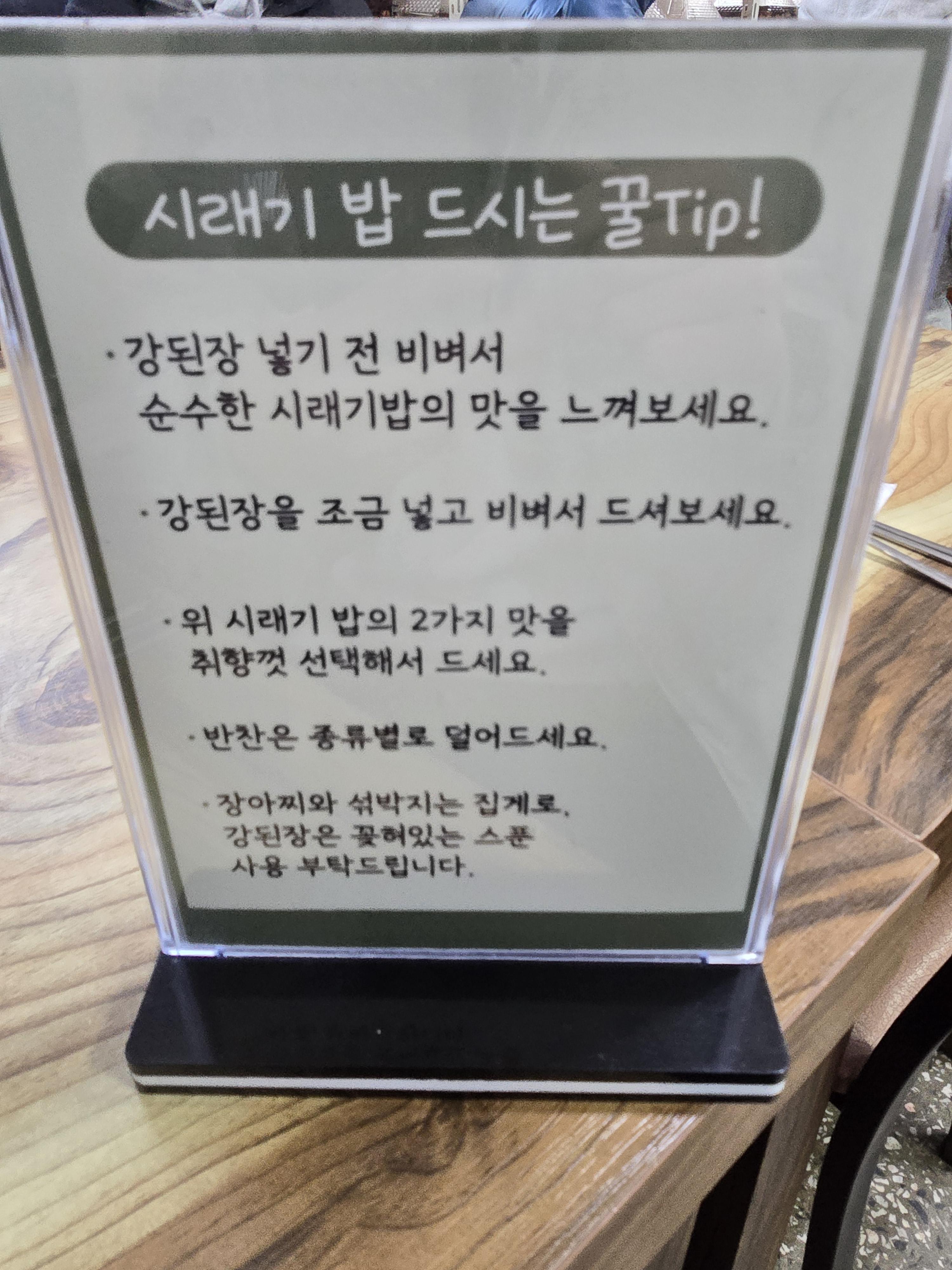 시래기밥을 주문하고 음식을 기다리는 동안 각 테이블마다 올려져 있는 시래기밥을 맛있게 먹는 팁을 정독했어요 이런 건 무조건 따라 해 보는 게 맞겠죠?