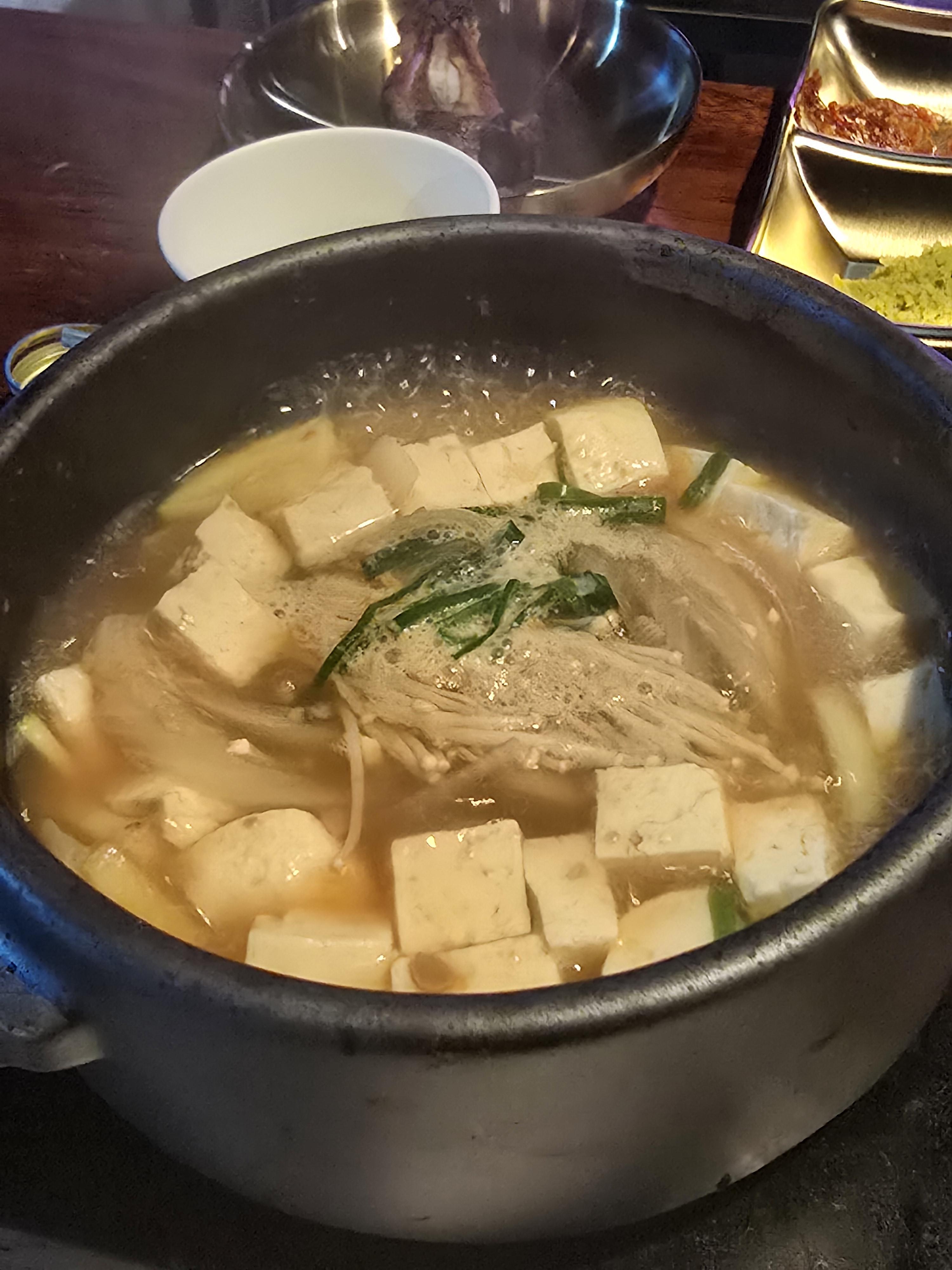 두부 듬뿍 들어간 된장찌개에 평소라면 공깃밥이 무조건이겠지만 생갈비 2인분을 혼자 먹고 나니 고깃배가 불러서 후식은 된장찌개만 먹고 나왔어요