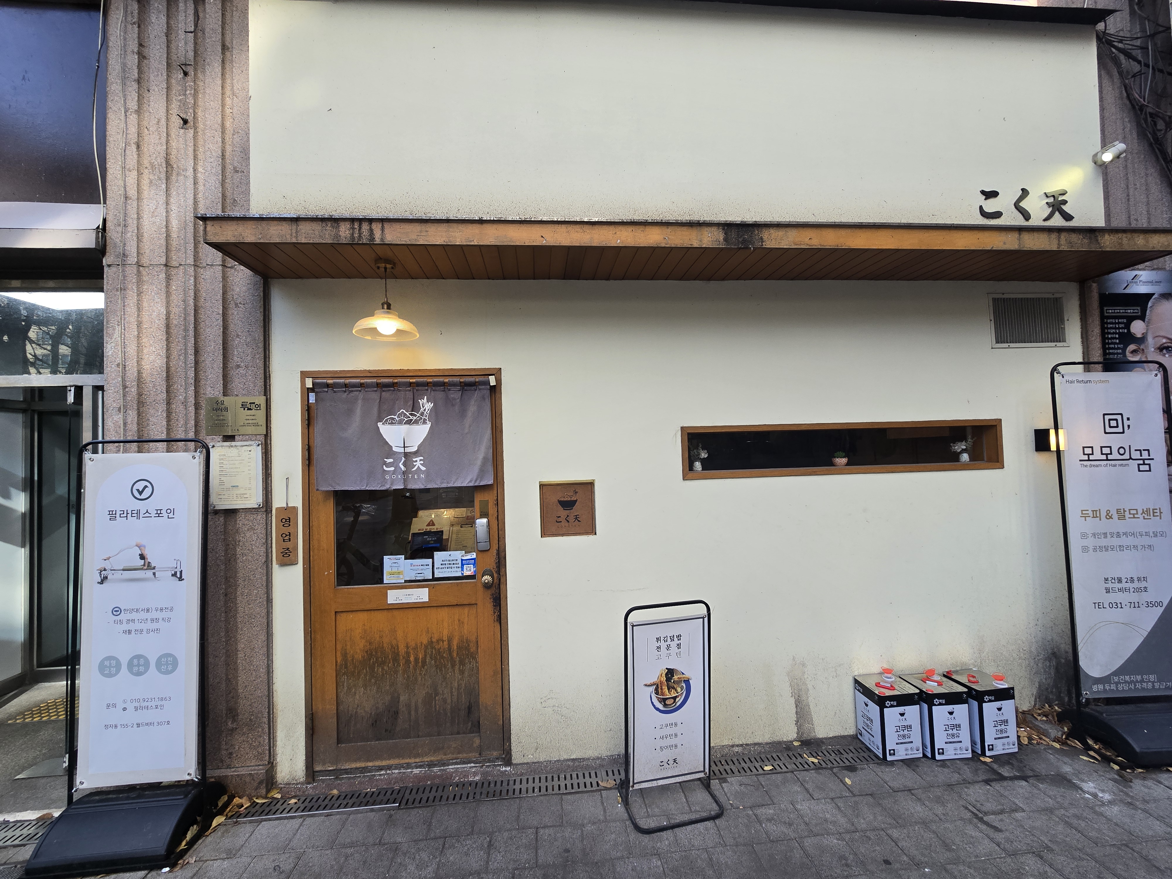 분당 서울대병원에 진료를 가면 항상 윤밀원에 들려서 평양냉면을 먹고 족발을 포장해서 오곤 했는데 이번에는 다른 맛집을 가보고 싶길래 분당 정자동 맛집을 열심히 검색했어요 정자동에 여러 맛집들이 있었지만 저의 픽은 텐동 맛집 고쿠텐 본점이었어요 고쿠텐은 여러 지점이 있는데 분당 정자동이 본점이라길래 본점의 명성을 확인하고자 바로 찾아갔어요