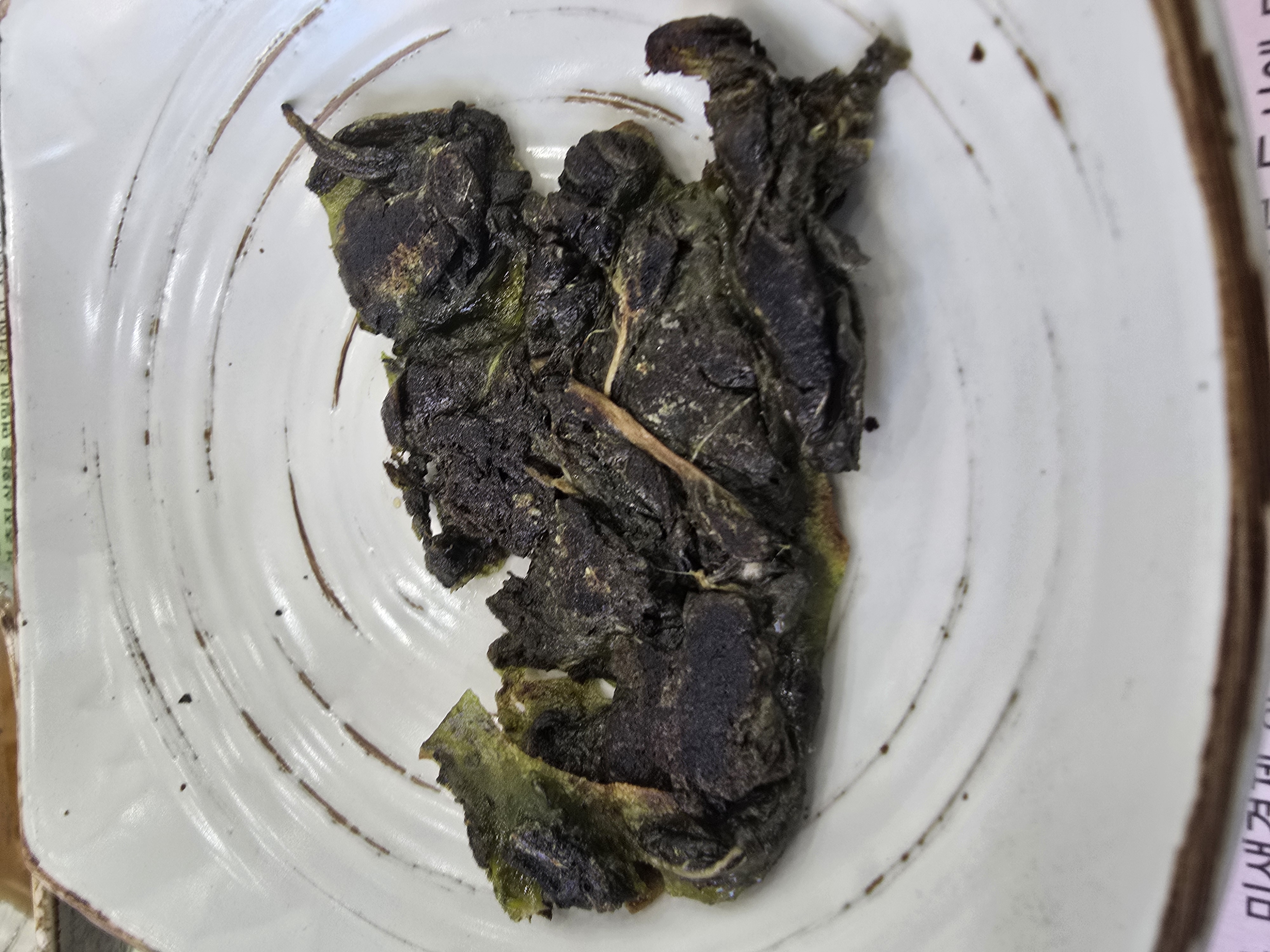 곤드레 전을 덜어서 앞접시에 놓고 먹으려고 하는데, 이건 너무 생소한 거예요. 근데 막상 먹어보니 곤드레 특유의 향과 질감이 너무 마음에 들었어요