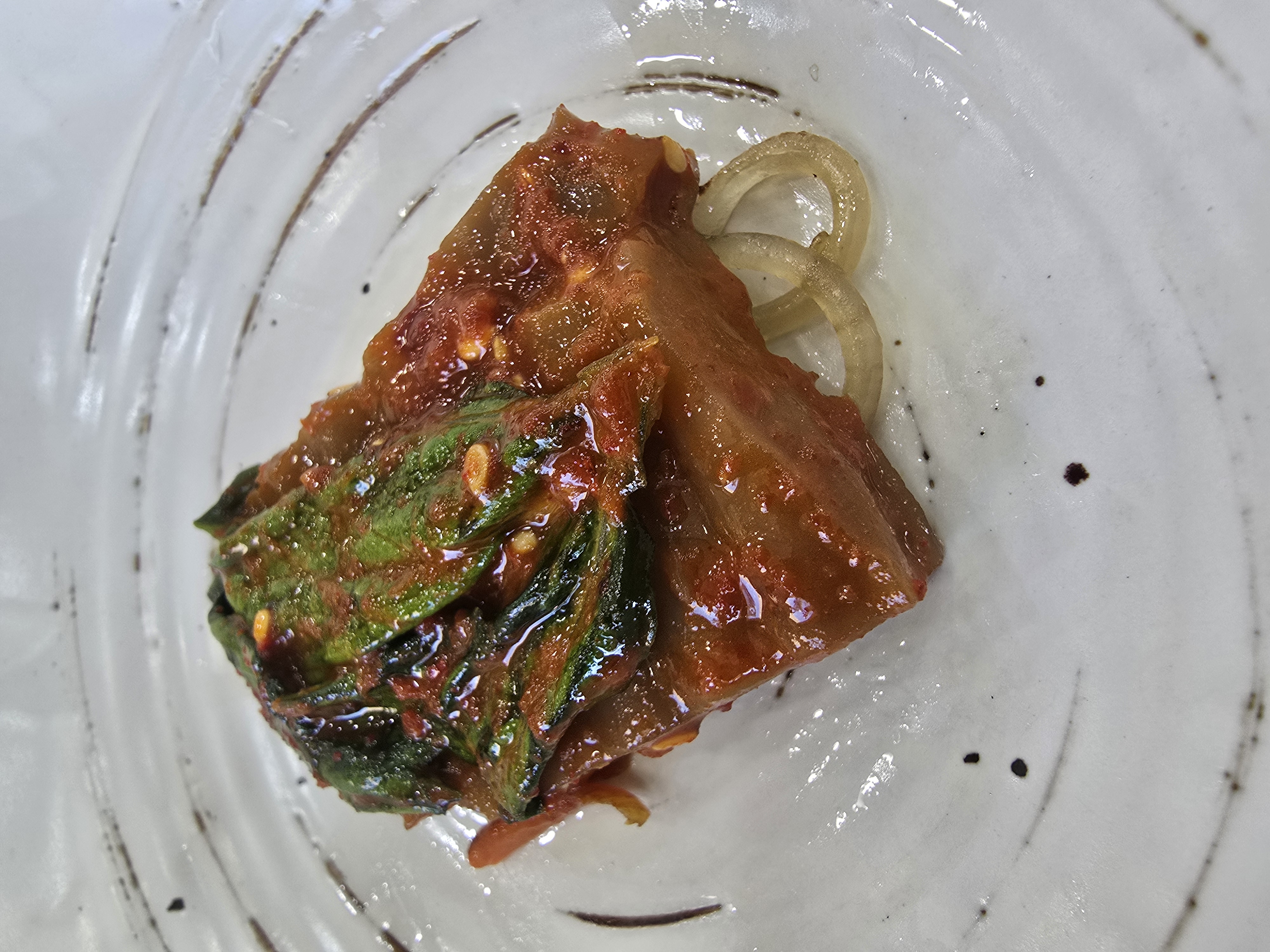 도토리묵은 매콤한 양념에 묻혔는데 무과 양념이 너무 잘 어울렸어요