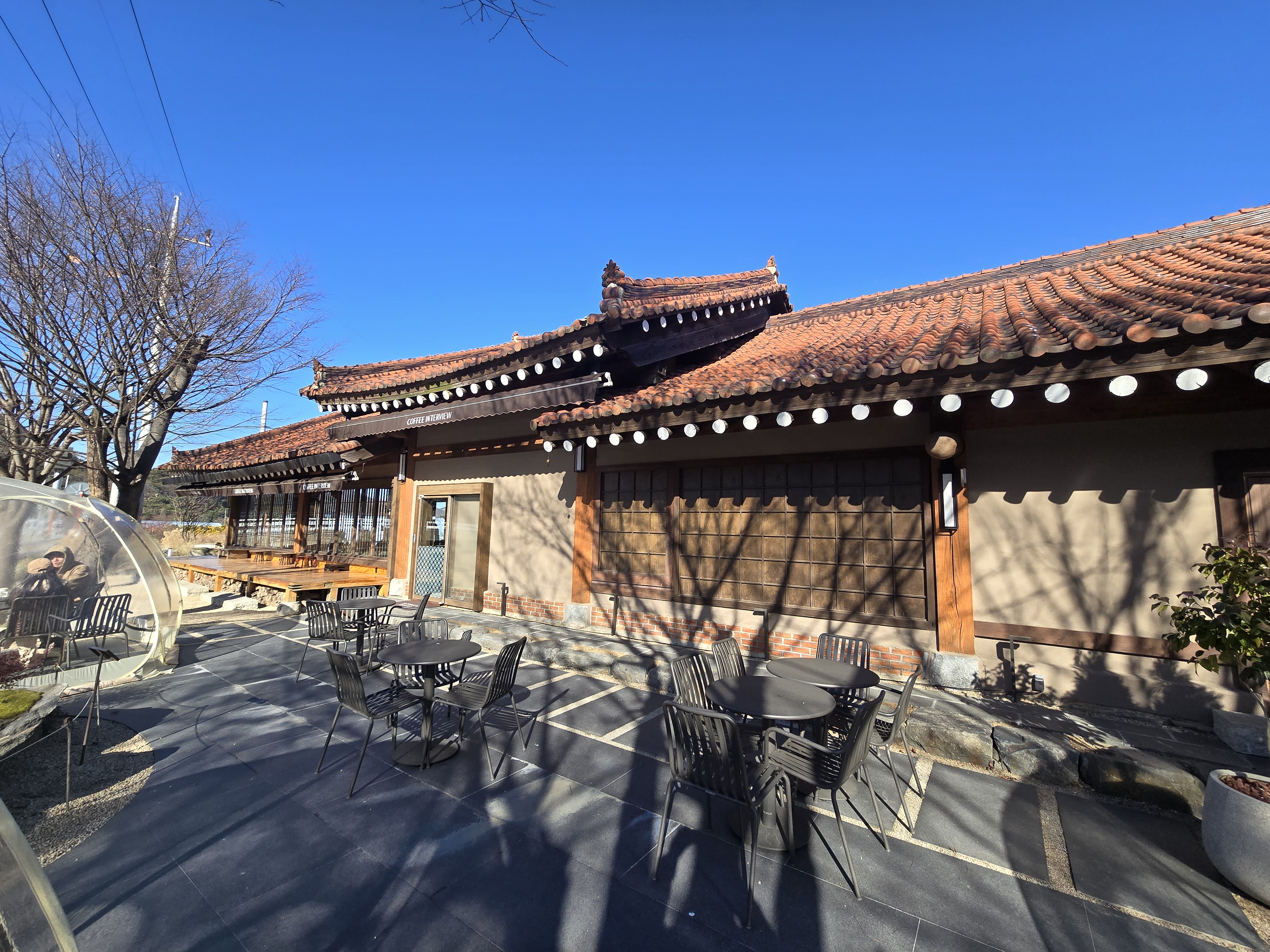 한옥분위기에 영어간판이 무척 어색하지만 그래도 통창의 매력은 있더라고요
