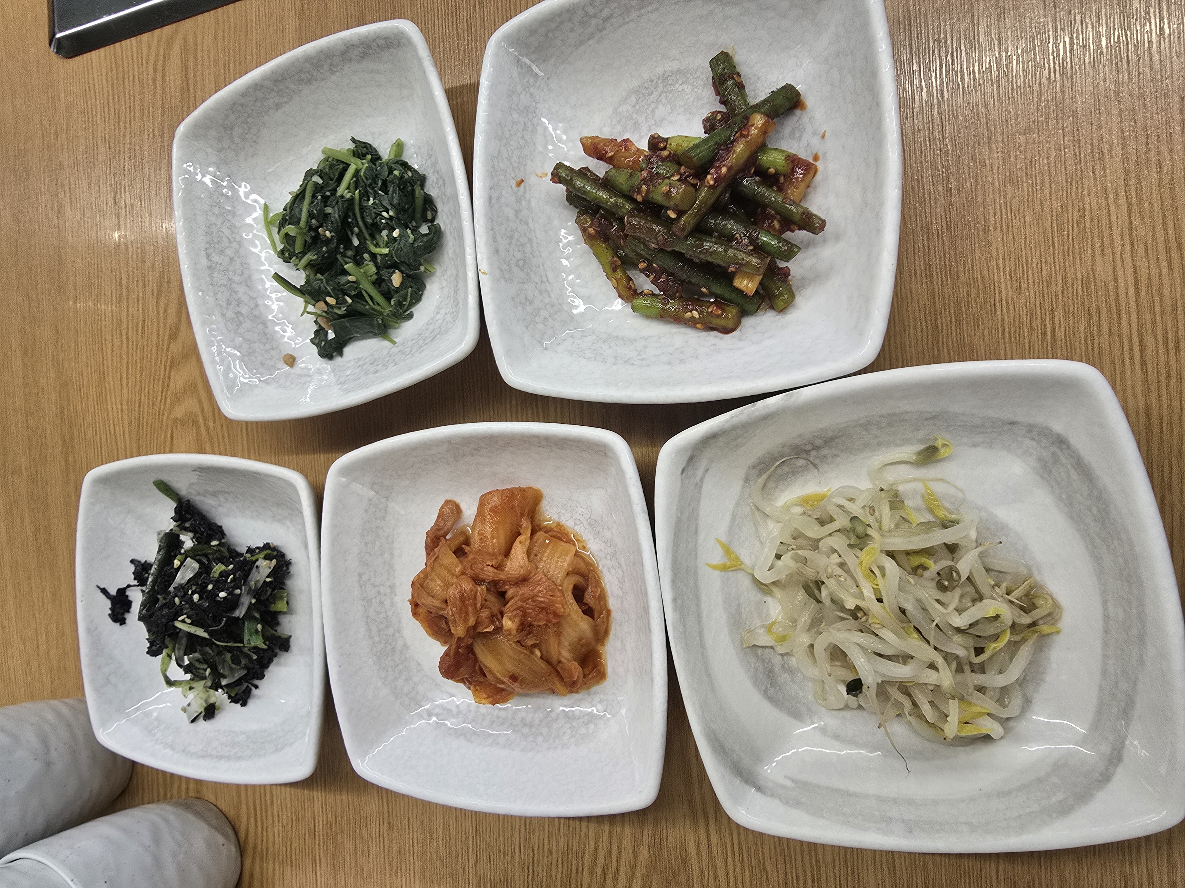 기본반찬은 총 5가지가 나오는데 마늘종무침, 숙주나물 등이 있었고 전부