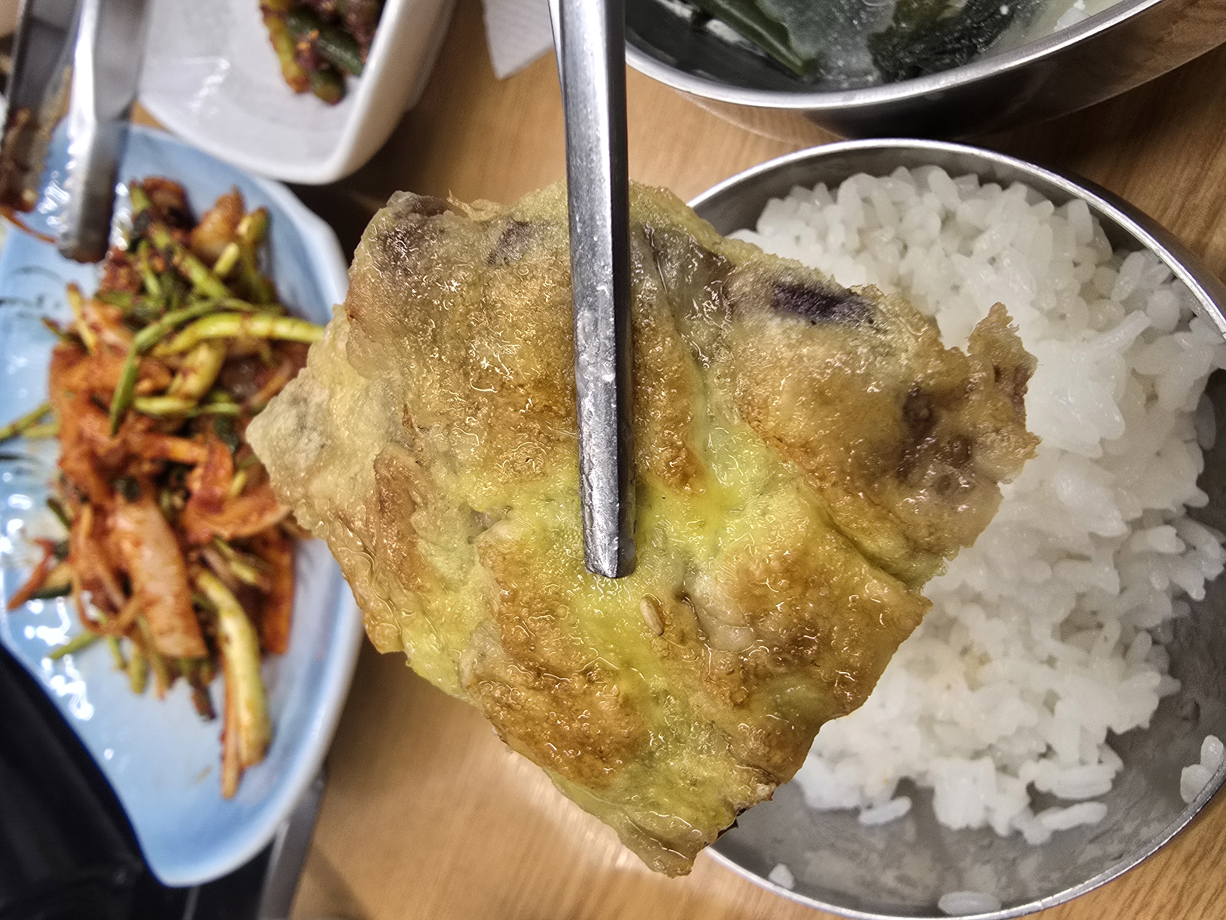 이건 육전이에요 전라도에서 유명한 육전인데 목포의 스타일로 노릇하게 잘 구워져서 나온 육전도 고기의 고소함과 계란 옷의 부드러움이 딱 좋았어요