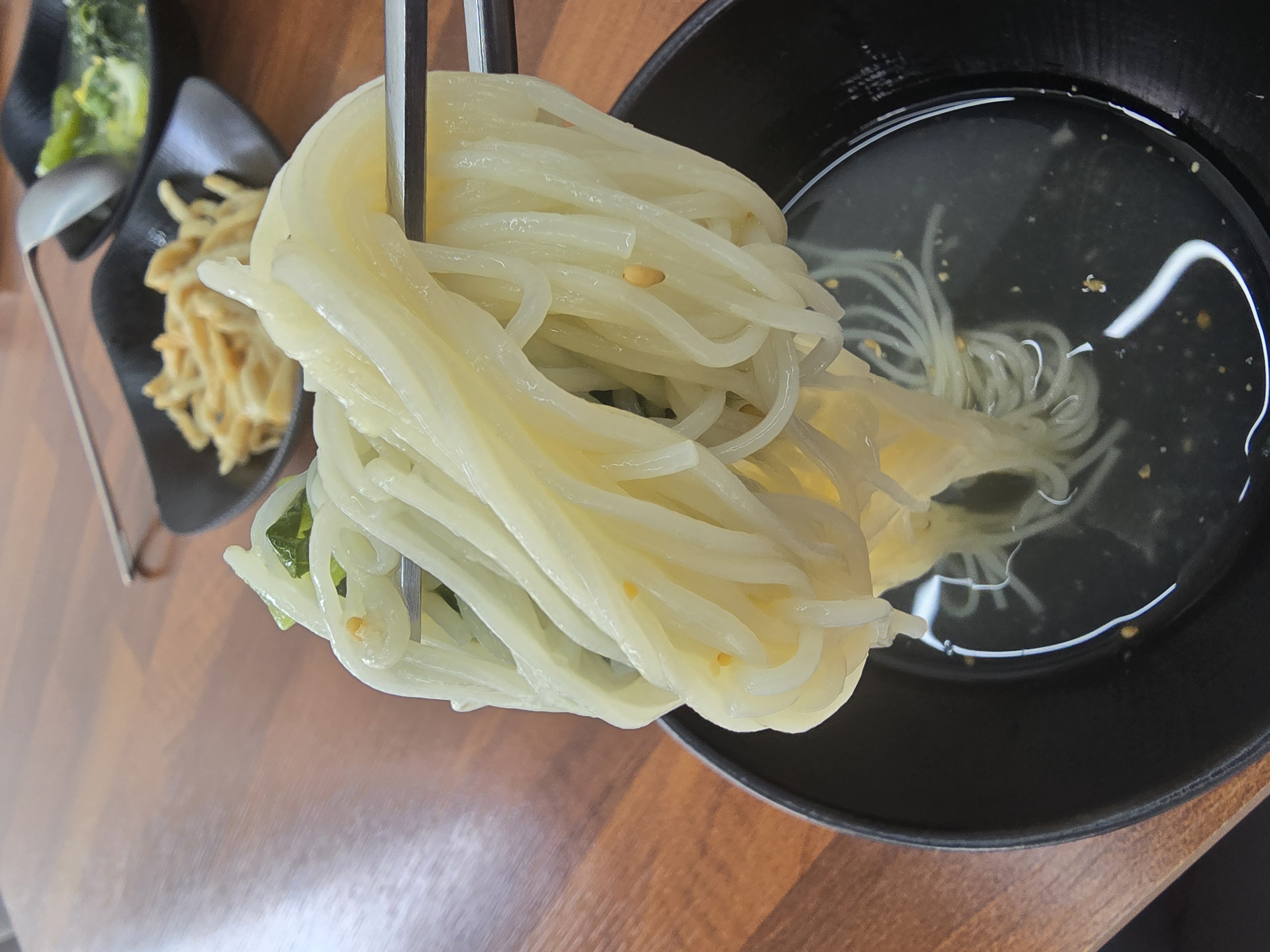 비빔국수에 같이 나오는 된장국인데 짜지 않고 딱 적당한 맛이라 살짝 매콤함이 올라올 때 달래기 좋았어요