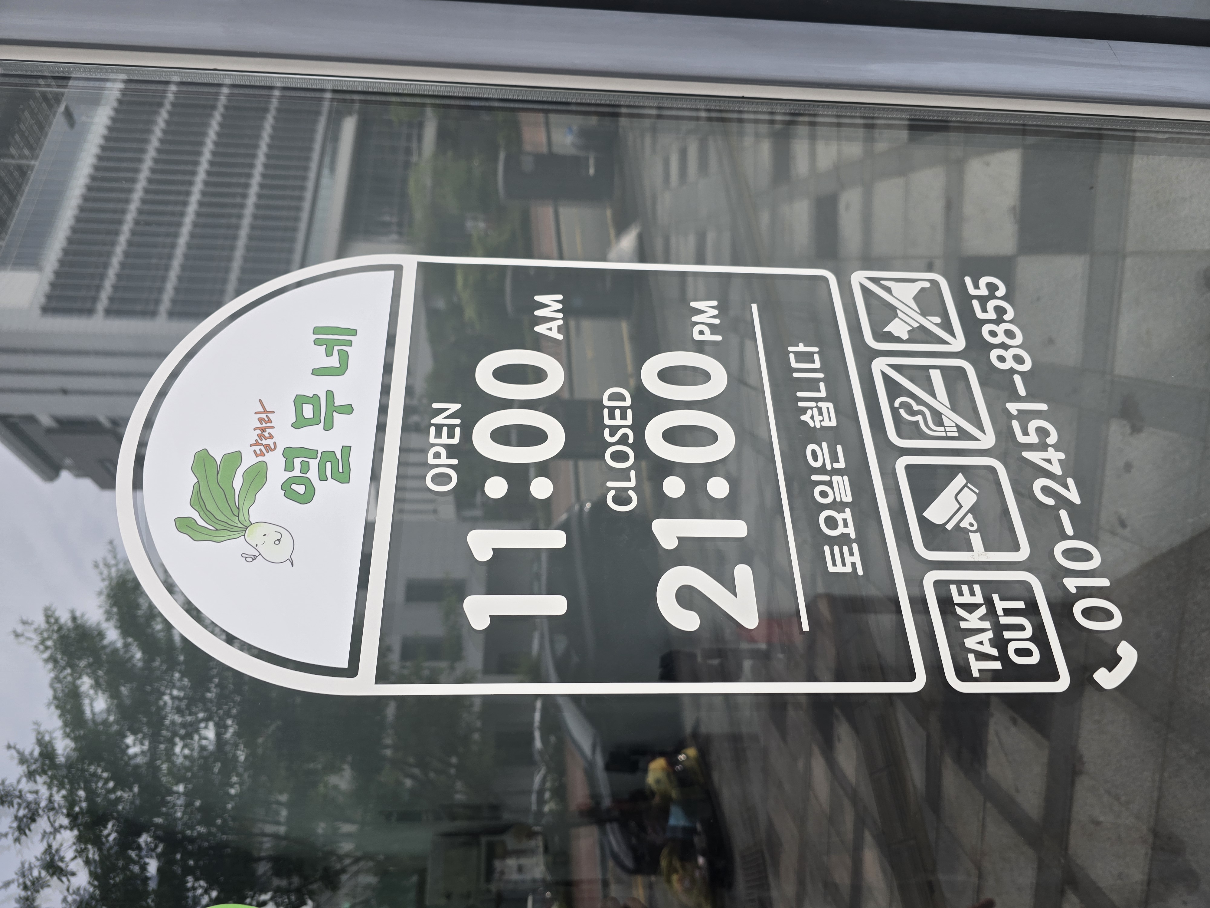 영업시간은 11시부터 21시까지이고 토요일은 휴무네요
