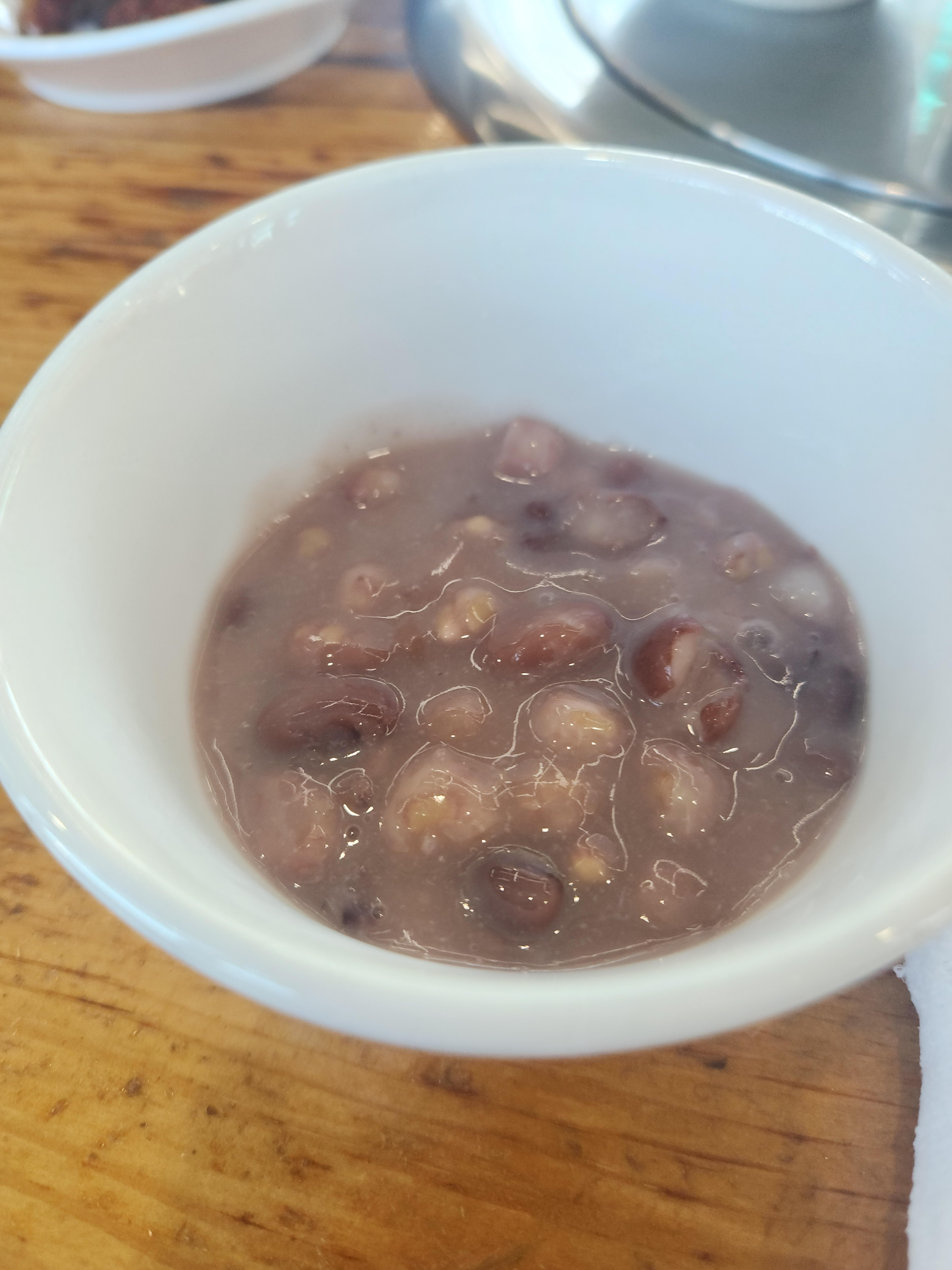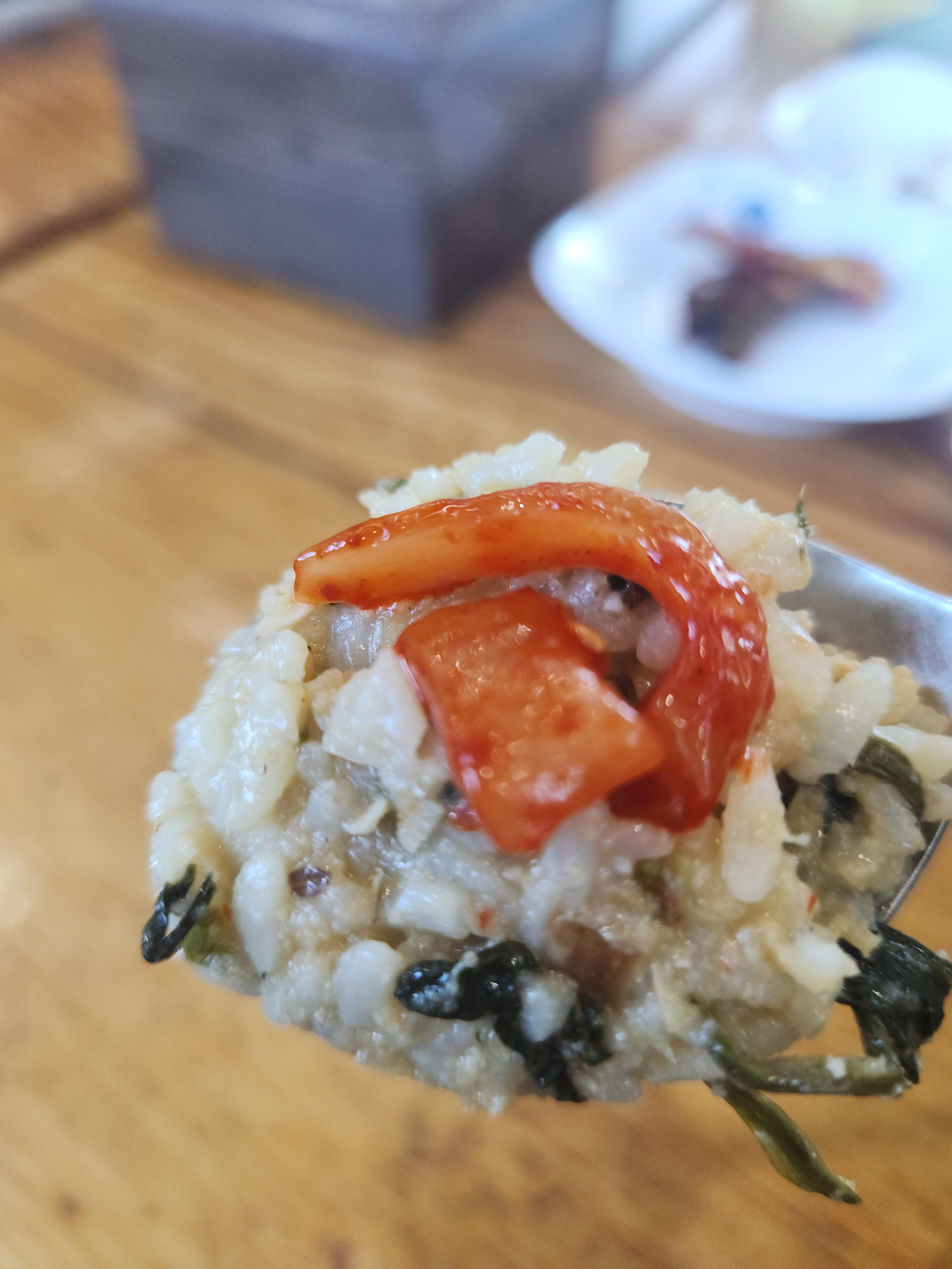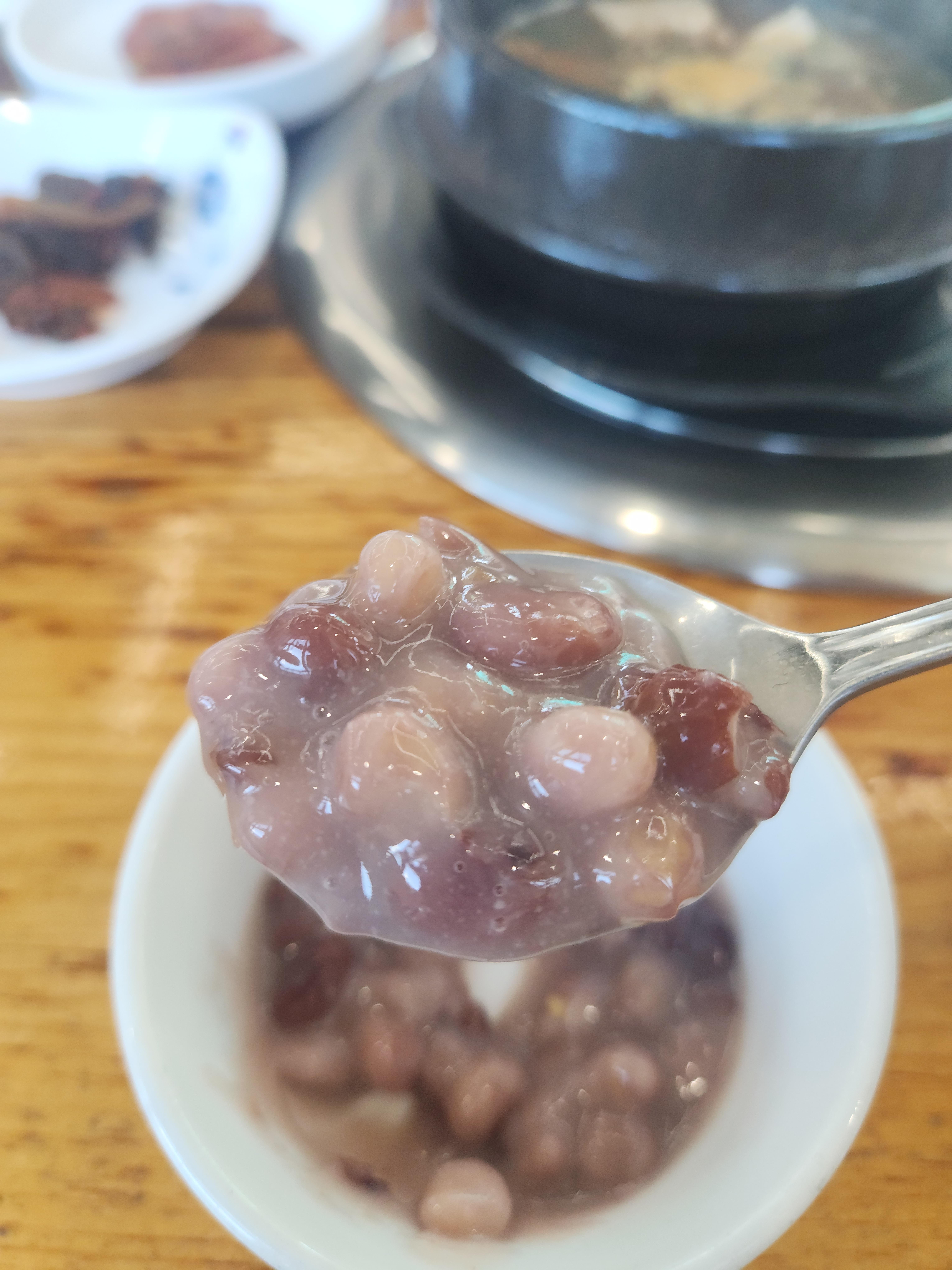 옥수수죽 한숟가락 떠서 맛보았는데 팥과 옥수수의 조합이 강원도의 시그니처랄까?